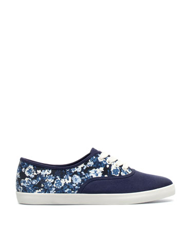 Ainda não tens nada com flores? Calça estes ténis com o estampado floral mais cool da temporada: o liberty. Deixerás a tua marca! (Bershka-24.99)